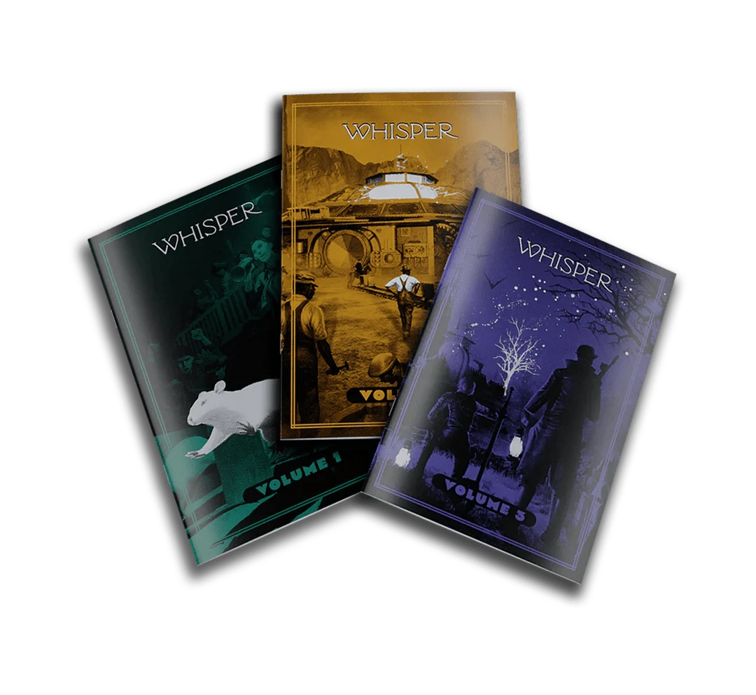 - A lore-based supplement presented as a collection of excerpts from the Whisper magazine, featuring three 24-page zines in this one package, for a total of over 70 pages of content