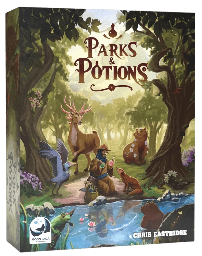 Players step into the boots of Park Rangers, whose expertise in botanical alchemy transforms the wilderness into a sanctuary for healing. With the roll of the dice, players gather extracts from the park's flora, concocting potent potions to treat the ailments of animals from different biomes. Successfully healing animals and performing experiments earns points, directly reflecting your role in maintaining the park’s well-being. Aim for animals in similar habitats to unlock bonus points, reflecting the depth of your commitment to conservation. Or, take the path of experimenting to find new potions.
