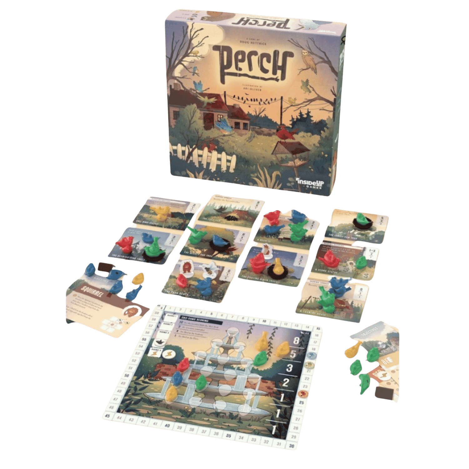 Players fight for control of locations by commanding birds of their own, and other players’ flocks. Earn points and command woodland creatures by having the most birds on a location, pushing your foes off the perch, and breaking ties to take the lead.