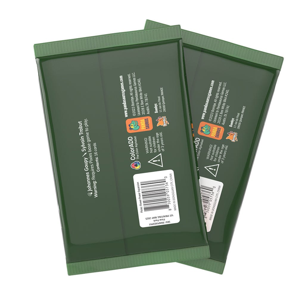 Pixies: Flower Power adds new twists to the charming, colorful world of Pixies. This expansion introduces 14 unique cards that bring fresh challenges and opportunities —like cards with dual colors, penalties for collecting certain colors, and bonuses for cleverly placed facedown cards. With these additions, the game now supports up to 6 players, creating even more engaging and strategic tilelaying fun.