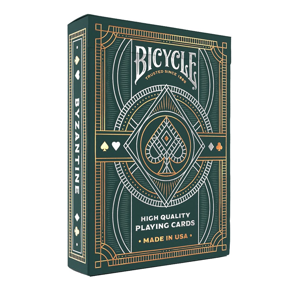 Timeless, elegant line work fills every inch of Bicycle Byzantine Playing Cards. Bring a heightened level of sophistication to your next game night with striking gold and silver foil highlights on the tuck, and fully custom court card and card back designs.