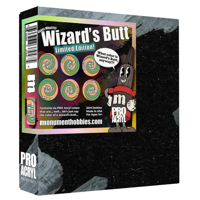 What the heck kind of color is Wizard’s Butt anyway? Nobody knows! But here’s what YOU need to know - This is a Limited Edition Set of PRO Acryl Paints - Six all-new and unique colors that are mixed at random from pigments we use in the main range. They all have the same name but are all different. See? That’s how this works. A Wizard’s Butt is whatever color it wants to be! *