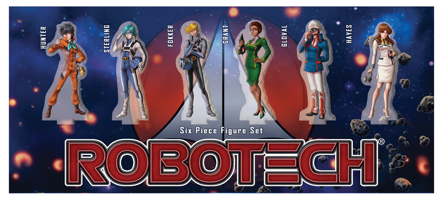 Upgrade your copy of Robotech: Attack on the SDF-1, or just display these beautiful acrylic standees featuring the six characters! These can be used to replace the cardboard standees in your game - printed in full color on both sides of the standee, they can be viewed from any angle! Each figure stands approximately 2.5 tall. The set includes Rick Hunter, Max Sterling, Roy Fokker, Claudia Grant, Henry Gloval, and Lisa Hayes. Robotic: Attack On The SDF-1 is a cooperative board game for 1-5 players who each take on the role of a heroic character from the venerable Super dimension Fortress one, Also known as the sdf-1.
