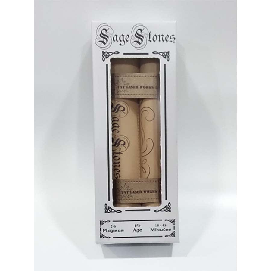 Sage Stones Scroll edition is a beautifully crafted faux leather scroll meant to invoke the feeling of being present in the world of swords and sorcery while you play. The scroll has two pockets on either end. One to contain all of the pieces and a second for the instructions. Rolling up the scroll and using the two snaps allows the game to be easily transported. Five different colors are available to fit the look and feel of you and your gaming space.
