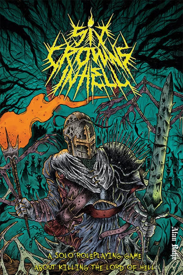 You are a lesser gretch, a soul in hell bound to servitude to the Hell Knights, as well as the Great Evil of Hell. You're done with that. You`re going to kill the six Hell Knights, the primary servitors of the Great Evil and take their crowns. With the power you amass, you can either escape hell or take the fight to the Throne of Hell itself. A Solo Roleplaying Game, Guided by Firelights. SIX CROWNS IN HELL uses the Firelights system, developed by Fari RPGs and Ren-Pier Deshaies. The book is about 44 pages in total, including all the rules, enemies, and tools you need to play the game. Using two six-sided dice and a standard deck of playing cards, you can explore a hellish landscape, creating a map and narrative as you travel through Hell, hunting down the Six Crowns you need to escape. (Hardcover, black and white book)