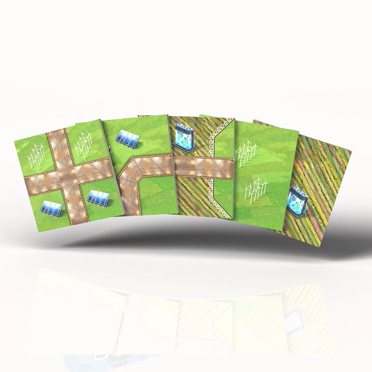 To create your own utopia and win the game, players must score the most points by using the tiles to build solar farms, windmill systems, water filters, and cultural hubs. This super fun game uses principles of sustainability, innovation, and community, encouraging players to harness renewable energy to create tranquil garden environments.