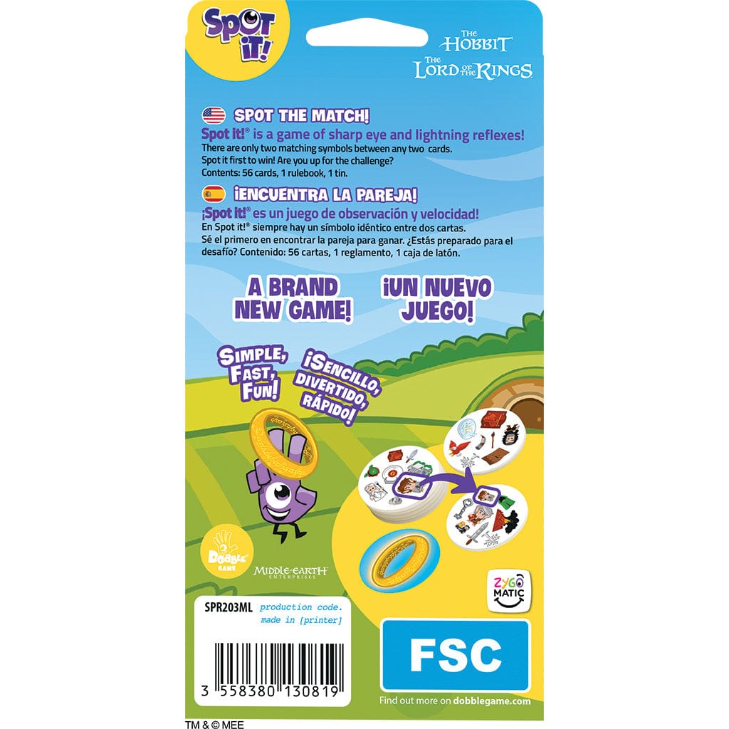 - RACE TO SPOT THE MATCH: In this Lord of the Rings edition of Spot It!, players compete to find the one matching symbol between any two cards before their opponents.