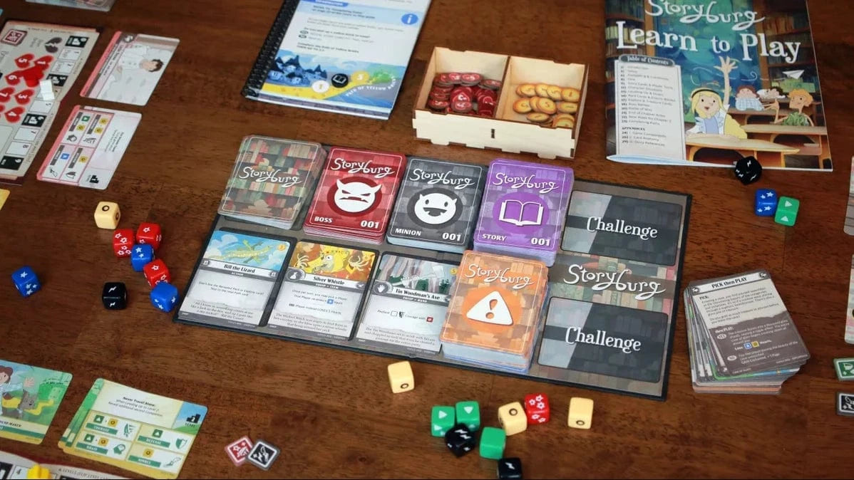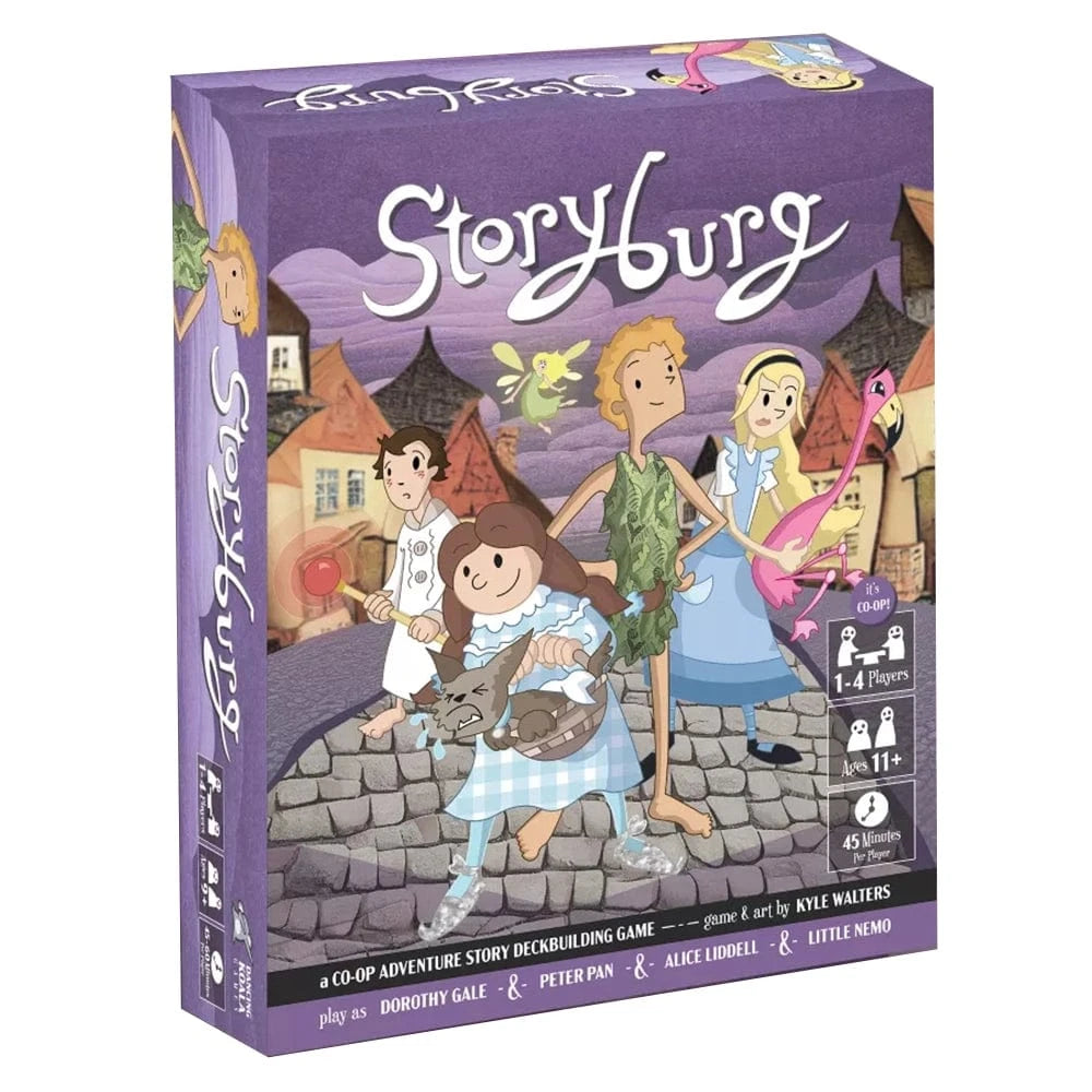 Storyburg is a co-op adventure story deckbuilding game for 1-4 players. A mysterious force is ripping apart Storyburg. Explore the perils solo or as a team by playing as Dorothy Gale, Peter Pan, Alice Liddell and Little Nemo. Players will travel to Oz, fly to Neverland, fall down the rabbit hole to Wonderland, and dream of Slumberland. Solve the mystery of the Pages and save Storyburg before it’s too late! Players will equip cards, play actions, and create ultimate dice rolls in a thrilling adventure for the ages. Elements of dungeon-crawlers, deck-building, and pick-your-own-stories create a unique gameplay each time. With five action-packed Chapters, Storyburg will entertain your gaming group through multiple sessions.