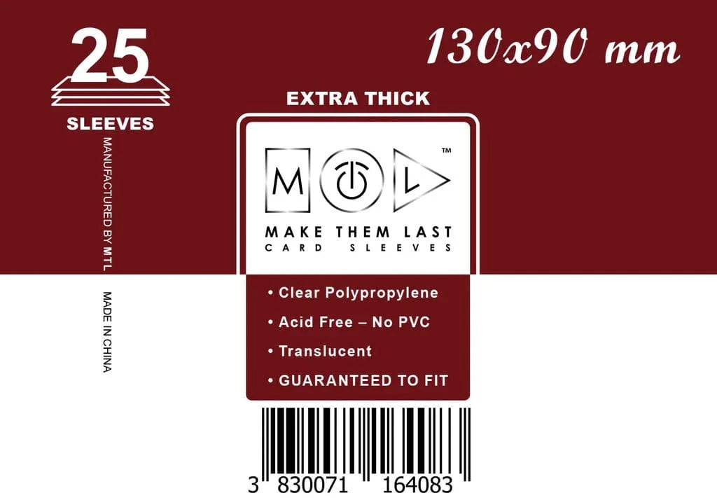 Sleeves are suitable for cards of size: 130 X 90 mm (cca. 5 1/8 X 3 35/64 inches)
