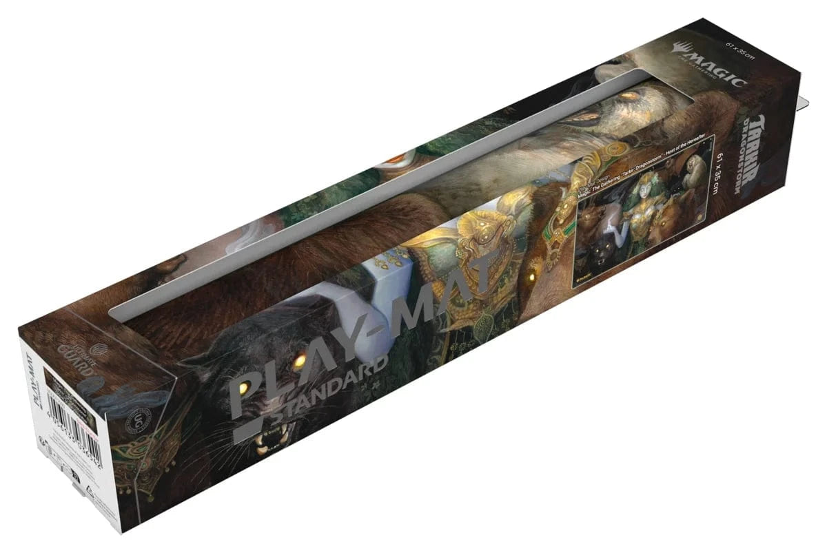 The 61x35cm Play-Mat protects cards and sleeves while playing and improves the gaming experience thanks to its anti-slip underside, while the stitched edges guarantee an even longer service life. The top side of the Play-Mat is printed with officially licensed artworks from Magic: The Gathering's upcoming set "Tarkir: Dragonstorm".