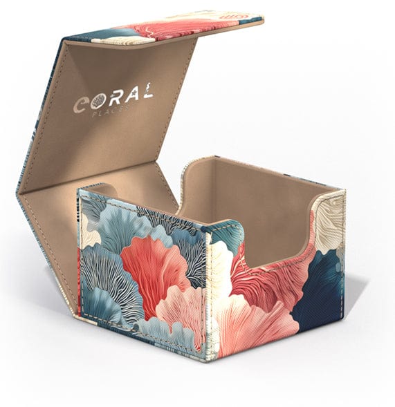 Dive into flourishing underwater worlds with the 2025 Exclusive Sidewinders from Ultimate Guard! The sustainable Coral Places deck boxes are made from 52% recycled materials and, in addition to the durable Xenoskin surface, have a strong magnetic closure and a high-quality microfibre inner lining so that up to 133 (double-sleeved) or 160 (single-sleeved) cards from games such as Magic: The Gathering, Pokemon, Lorcana, One Piece or Yu-Gi-Oh! can be stored safely. The plastic-free packaging is also made entirely from recycled paper and cellulose-based film.