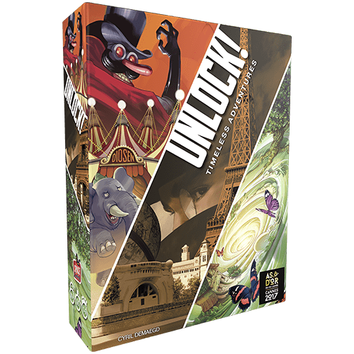 Unlock! is a co-operative card game inspired by escape rooms that uses a simple system which allows you to search scenes, combine objects, and solve riddles. Play Unlock! to embark on great adventures, while seated at a table using only cards and a companion app that can provide clues, check codes, monitor time remaining, etc. The three scenarios are