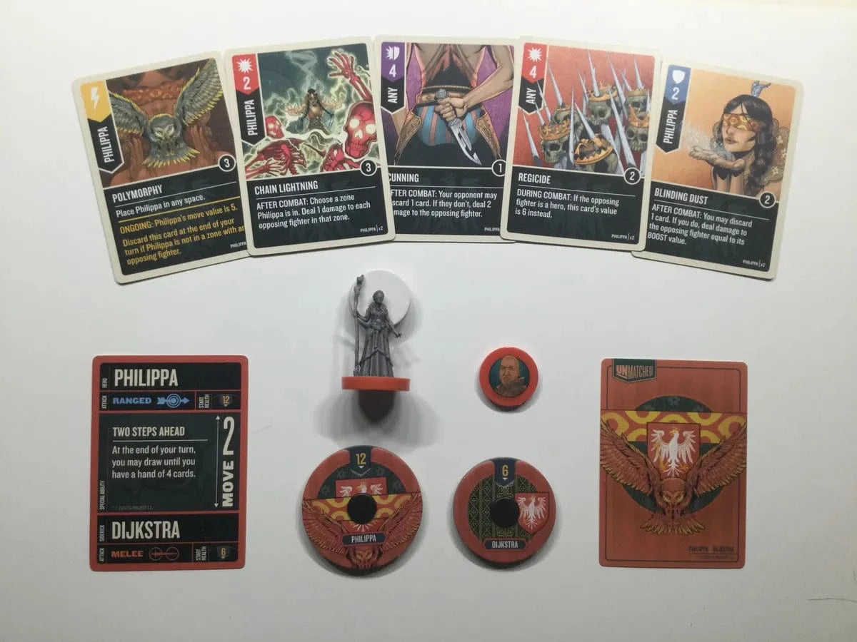 Unmatched is a highly asymmetrical miniature fighting game for two or four players. Each hero is represented by a unique deck designed to evoke their style and legend. Tactical movement and no-luck combat resolution create a unique play experience that rewards expertise, but just when you've mastered one set, new heroes arrive to provide all new match-ups.
