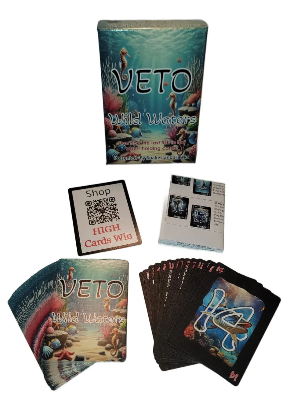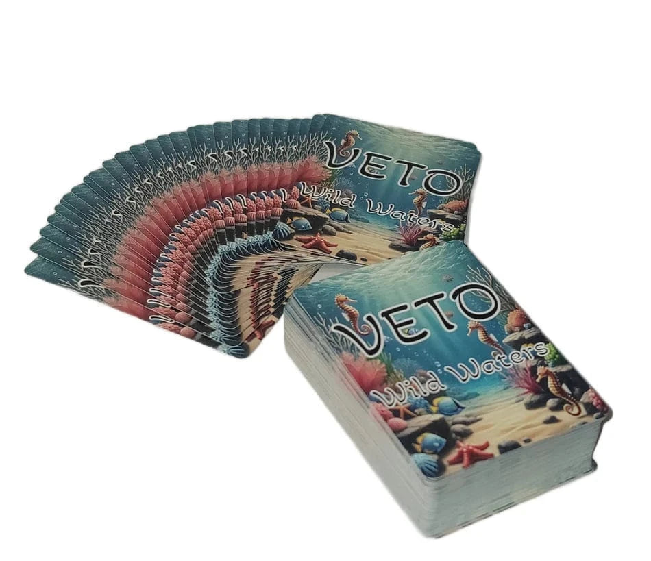 Dive into the excitement of VETO Wild Waters, the card game that's a perfect match for a splashing good time with family and friends.