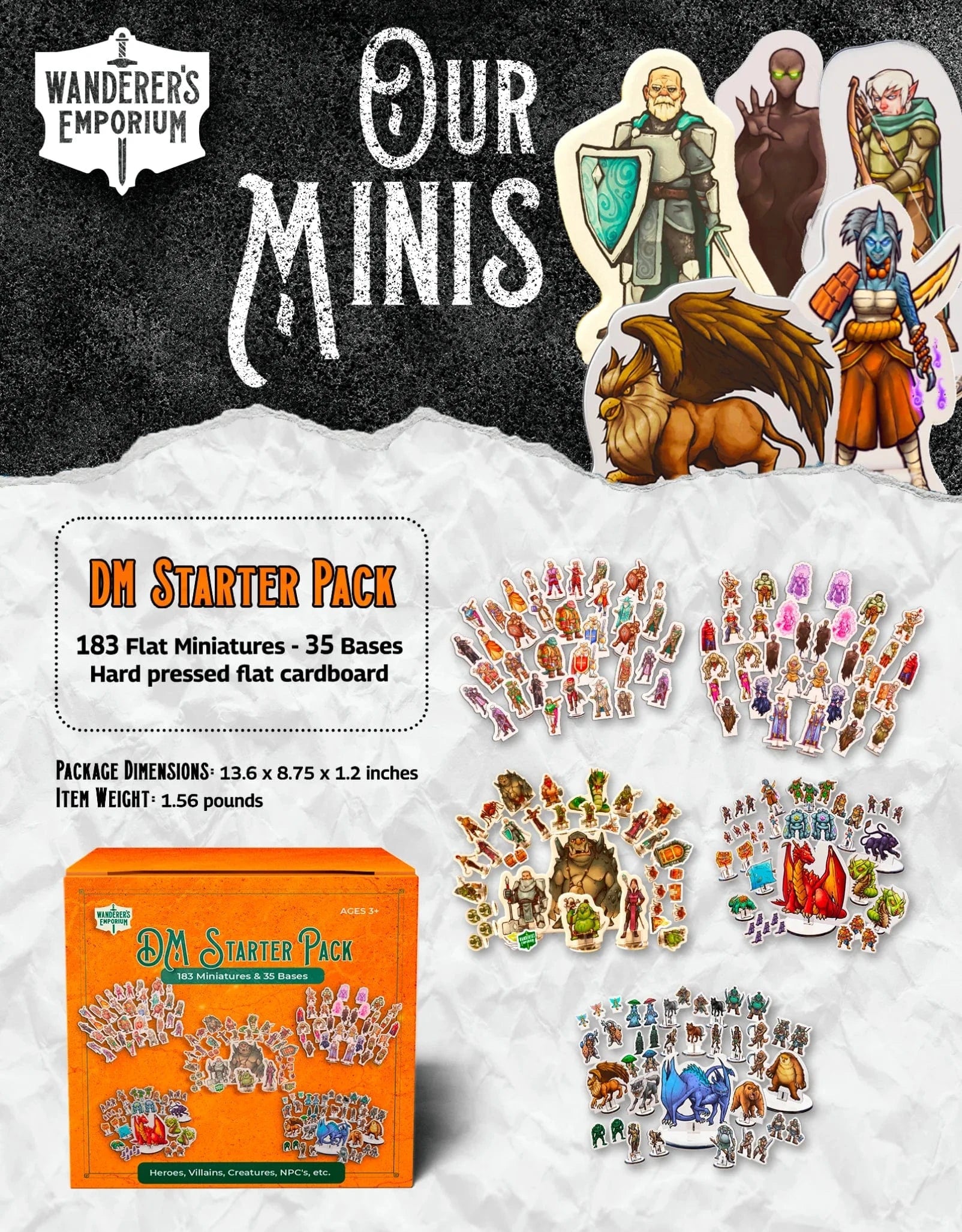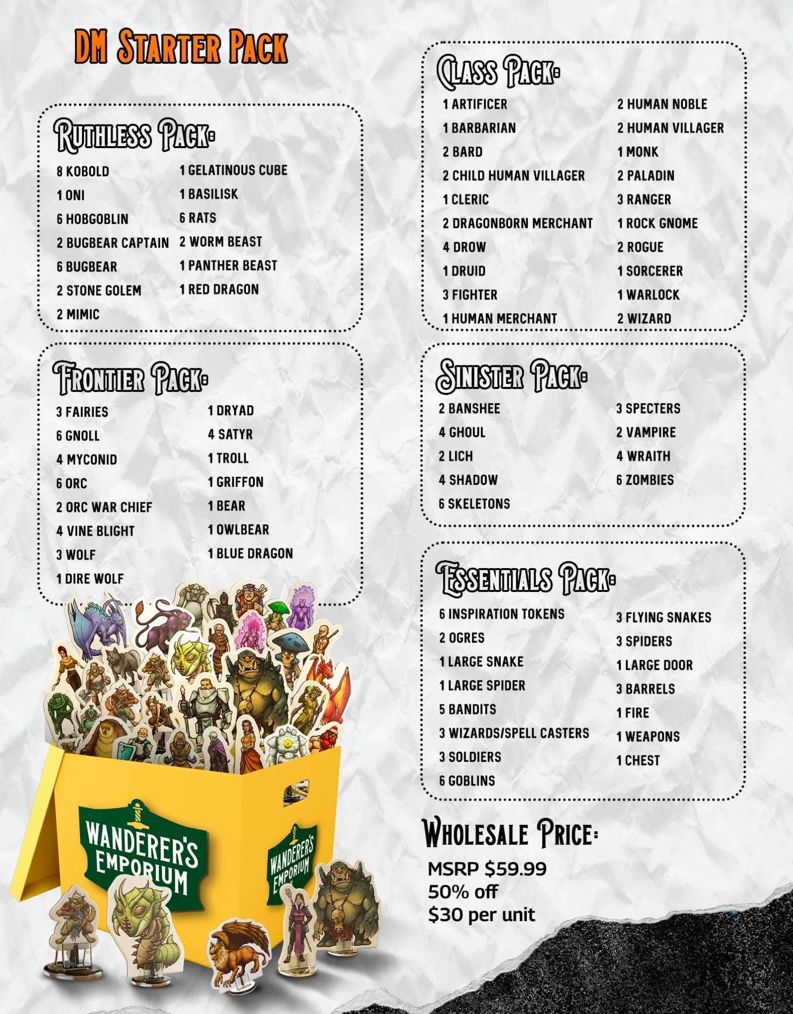 WHAT'S IN THE BOX: Minis curated to be a powerhouse for Game Masters in creating the most vibrant and immersive playing experience. Dozens of PC's, NPC's, Monsters, Villians, and Terrain! Dragons, Trolls, Goblins, Humans, Elves, Bugbears, Fairies, Gnomes and SO much more.