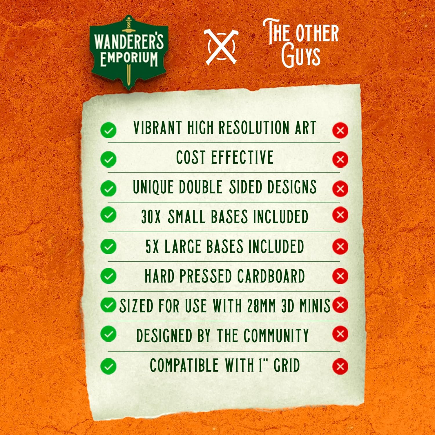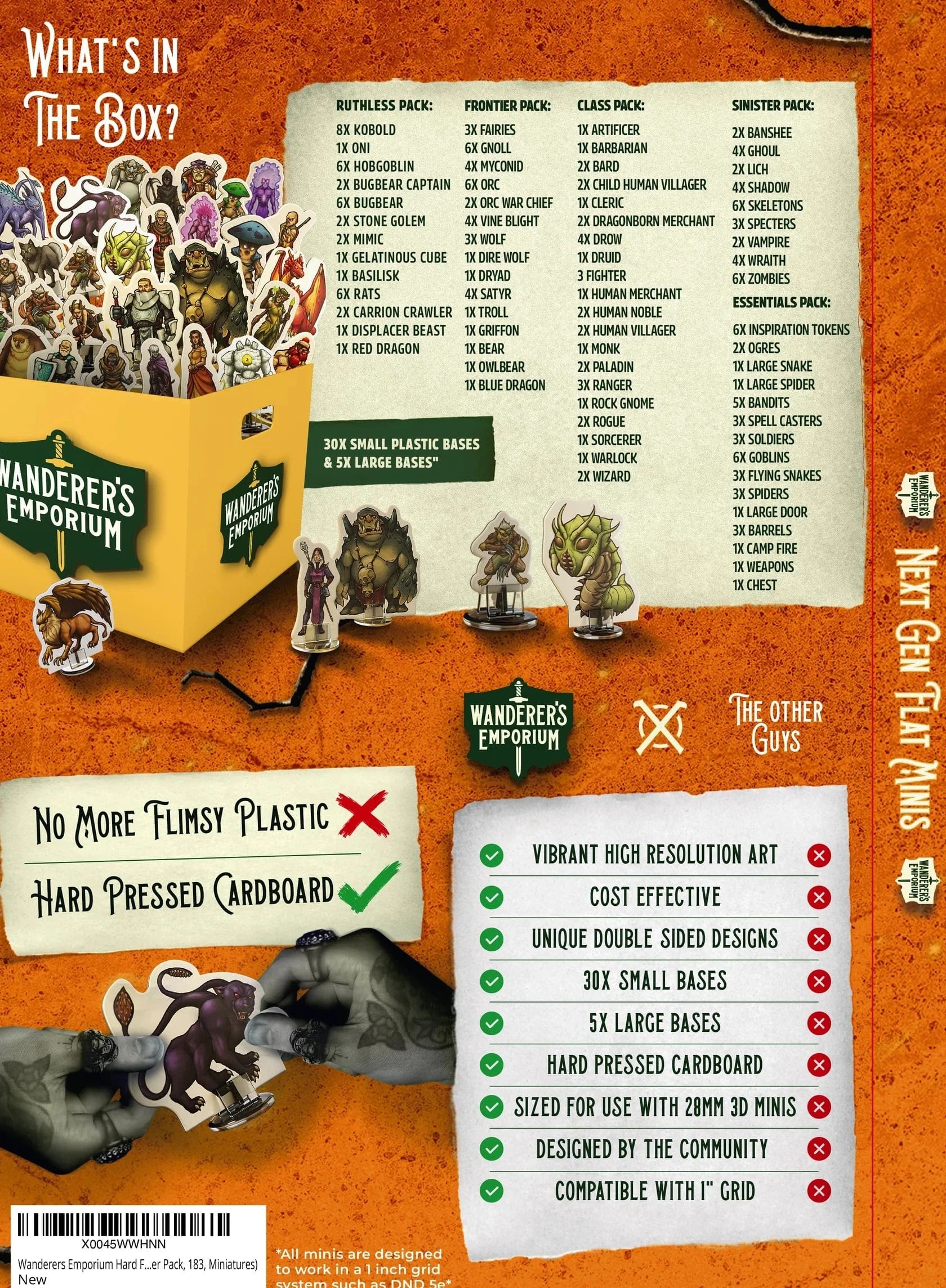 Contains 183 hard pressed cardboard miniatures, 30 small quick-remove plastic bases, and 5 large quick-remove plastic bases.