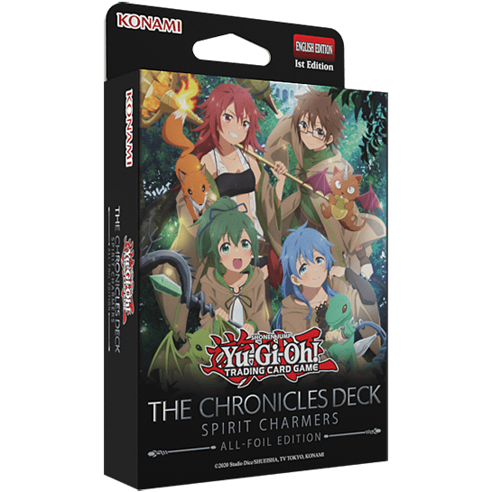 Continue the journey of the animated series with the Yu-Gi-Oh! TRADING CARD GAME THE CHRONICLES DECK: Spirit Charmers (All-Foil Edition). Yu-Gi-Oh! CARD GAME: THE CHRONICLES is lighting up YouTube so if you are not watching, you are seriously missing out! A new episode of this Promotional Short Anime Series is released every month, telling the stories of the monsters behind the cards, set in their own worlds! The story running from December through March is Spirit Charmers, follow them and their familiars on an epic fairy tale adventure! And you can join the magical world of these ongoing animated releases with THE CHRONICLES DECK: Spirit Charmers (All-Foil Edition). This 51-card all-foil Deck includes the key characters, places, and situations seen in the animated shorts, making you feel like you are a part of the story! It comes with 2 brand-new cards never seen before, 4 new variant arts, and every card in the Deck is foiled up! The Main Deck and Extra Deck combined, are 50 Ultra Rare Cards. The 51st card in each Deck is a Secret Rare repeat of one of the Deck's Ultra Rare cards, but with a bonus chance to upgrade to Starlight Rare, instead! (Just like the foil upgrades in this year's THE CHRONICLES DECK: The Fallen & The Virtuous (All-Foil Edition) and Structure Deck: Blue-Eyes White Destiny). THE CHRONICLES DECK: Spirit Charmers (All-Foil Edition) comes with 51 cards: 50 Ultra Rares 1 Secret Rare (a second copy of 1 of 6 of the Ultra Rare cards), with a small chance of being Starlight Rare instead of Secret Rare
