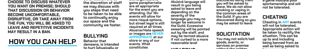 We ask organizers to maintain a welcoming, inclusive environment and abide by our Code of Conduct. Clear communication, cleanup of your area, and respect for staff and guests are expected. Also your Gathering is expected to start on time as advertised.