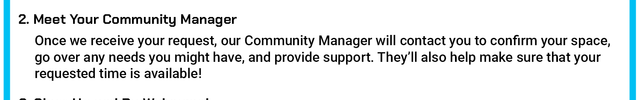 Never worry about finding a table! Your Community Manager will save a space for you.