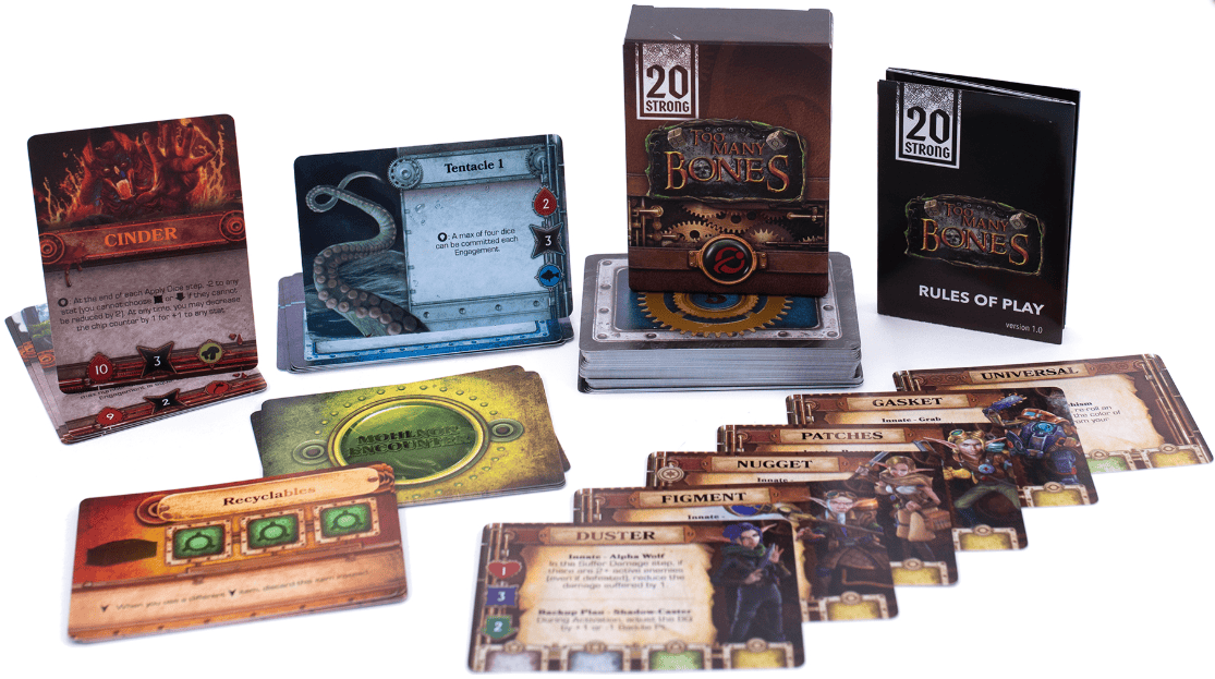 20 Strong: Too Many Bones takes you on a bite-sized adventure though the world of TMB, with a deck stacked full of treasures and tyrant encounters.