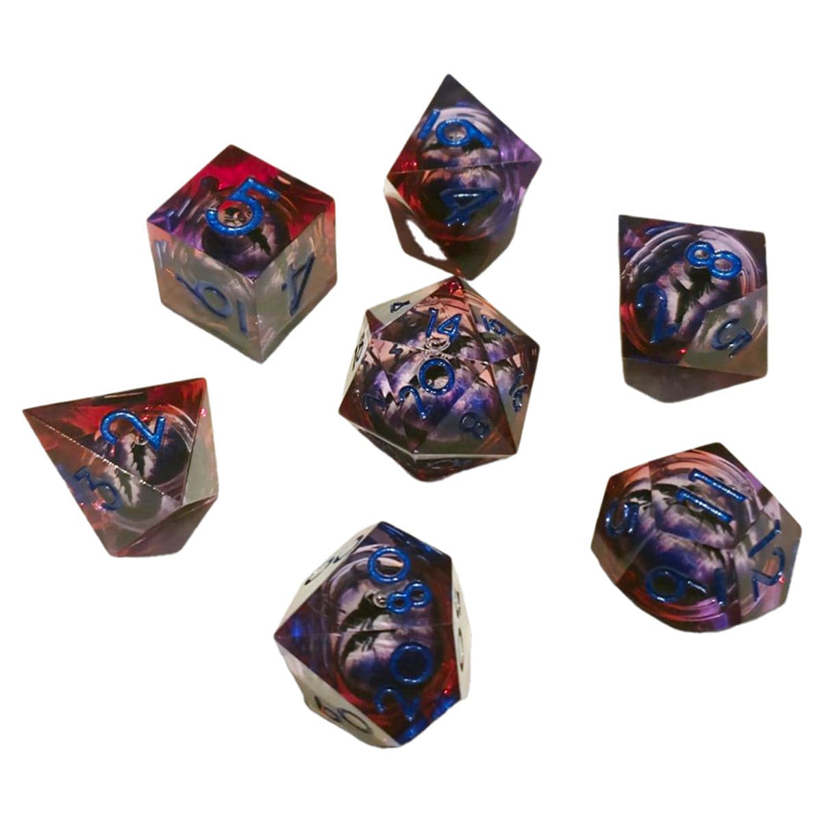 Be the first at your table to roll with these sharp new sets! Chronicle RPG's 'ICU' sets feature a follow-me liquid core eyeball and are hand-finished to provide a unique feel that makes for excellent gameplay. Each set also includes a metal tin with unique artwork and foam padding.