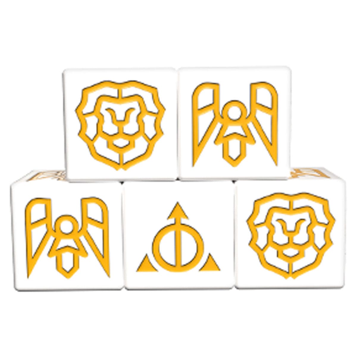 Includes 5 standard Divine Ashes dice, identical to the dice that come with the Law of Lions Deluxe Expansion set.