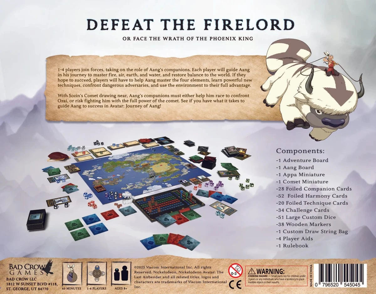 In Avatar: Journey of Aang, 1-4 players join forces, taking on the role of Aang's companions. Each player will guide Aang in his journey to master fire, air, earth, and water, and restore balance to the world. If they hope to succeed, players will have to help Aang master the four elements, learn powerful new techniques, confront dangerous adversaries, and use the environment to their full advantage.