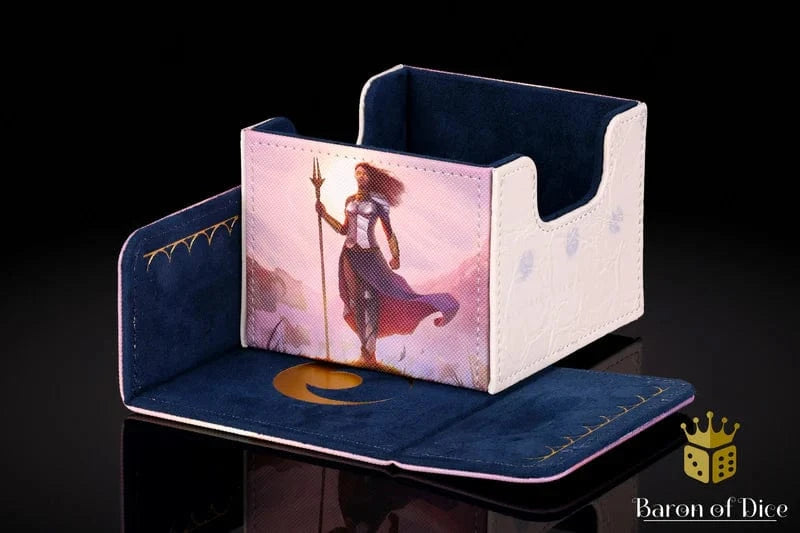 Our Field of Glory design features a full art wrap hand drawn by James Hayball, showcasing a renown general, she is standing tall atop the field of battle alongside a disciplined warriors, she is a leader deserving! An epic clash is bound to happen! This Field of Glory deck box is an awesome addition to any collection.