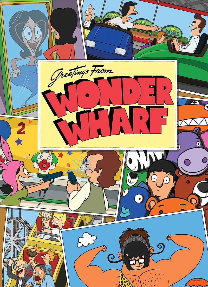 Join the Belcher family for amusement park antics with the Bob’s Burgers “Greetings from Wonder Wharf” 1,000-piece jigsaw puzzle! Collide into bumper cars with Bob, faceoff with Louise at the water race, and find Linda getting her curve on in the funhouse mirror as you put together this 19x27” postcard-style collage.
