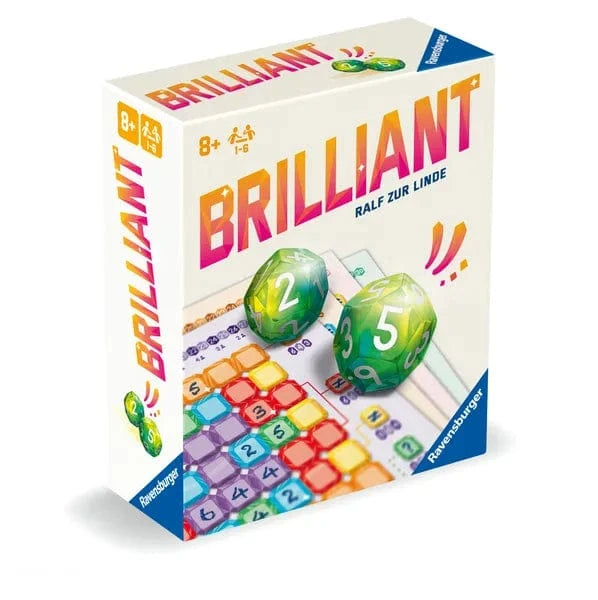 Grab the dazzling diamonds before someone else does! In Brilliant, your goal is to fill the fields on your score sheet with numbers as quickly as possible, thereby getting the number of points you need. To do this, write one of two numbers rolled next to a number you've previously entered. The grid is divided into areas of different colors for which different rules apply for entering numbers. The faster you complete an area, the more points you earn. The player with the most points at the end of the game wins.
