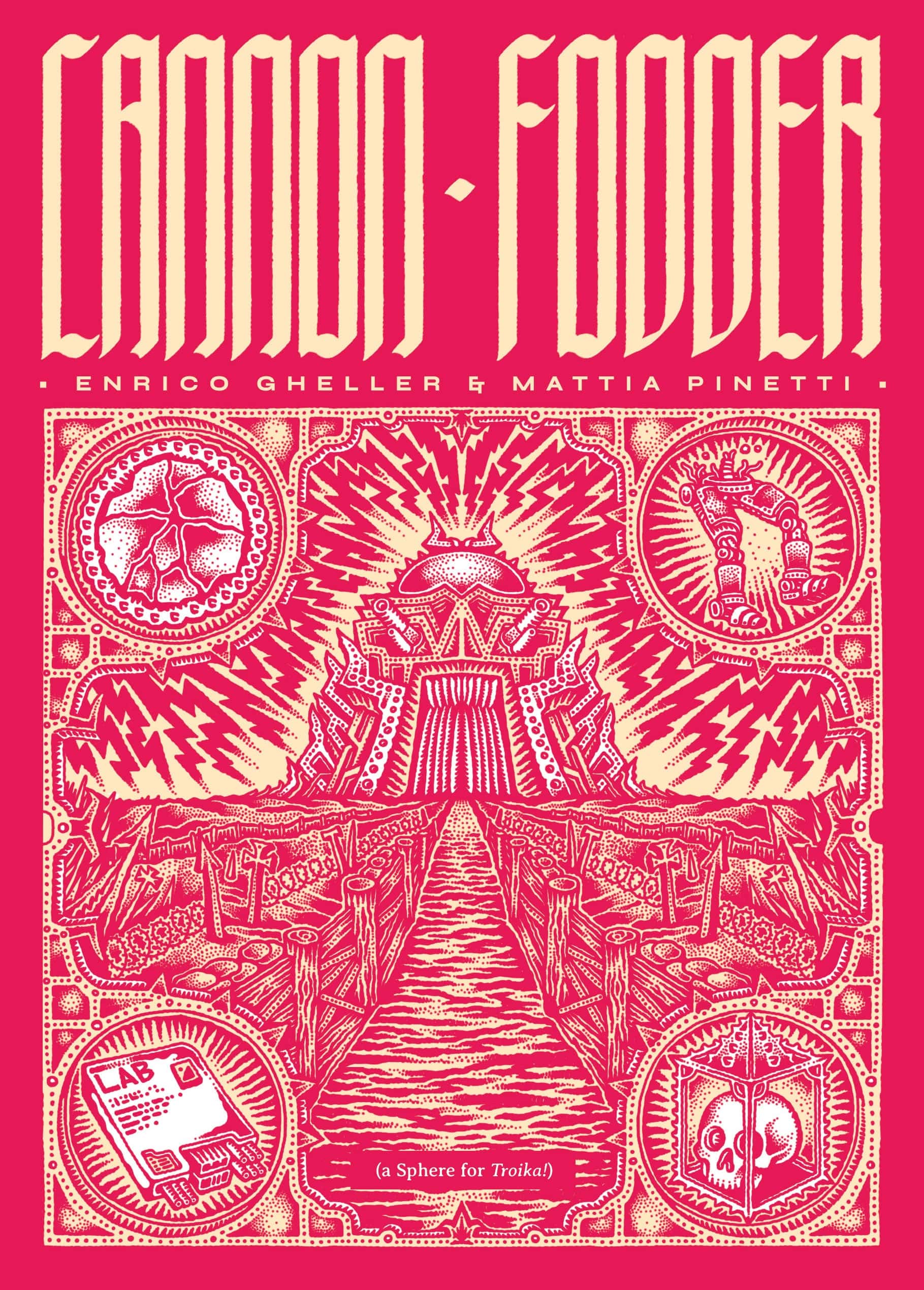 A dribble of sand tickled the face of the young recruit lying on the cot. What are you doing, soldier?! The ceiling won`t last long, grab your rifle and join your squad mates.We have no time to lose! Stop the crazy Cannon in an adventure across the trenches for a party of 3-5 chosen soldiers. Align yourself with the quirky Ochlocrats or the highly organized Die Lvmens, roleplaying one of 12 exclusive backgrounds. Explore the Continent, discover the mysteries of this Sphere and meet it`s bizarre inhabitants. CANNON FODDER! is a Sphere for Troika! RPG full of contradictions, science, occultism and, above all else, war.