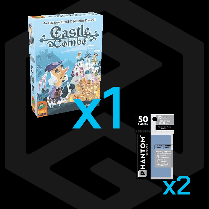 Welcome to His Majesty's legendary Combo Party! Build your dream team of characters by recruiting from the Village or Castle markets, then arrange them into a winning 3x3 tableau. Each character brings special abilities and scoring tricks—place them wisely to trigger combos and rack up points. The Messenger pawn lets you switch between markets and refresh available cards, giving you the flexibility to adapt your strategy on the fly. Connect your cards orthogonally, activate their powers, and outscore your rivals with clever combinations. Fast-paced and easy to learn, Castle Combo delivers strategic fun in just 20-30 minutes for 2-4 adventurers. Perfect for family game nights or friendly competition. This bundle includes the complete Castle Combo board game and two Grey Phantom Sleeve packs to protect your cards.