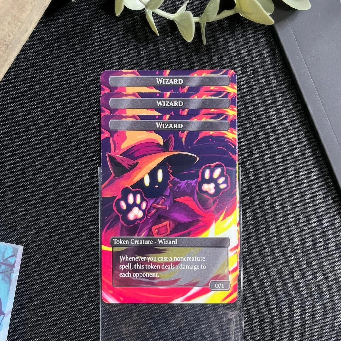 - Each card is sized identically to MtG cards and fit in all MtG card sleeves.