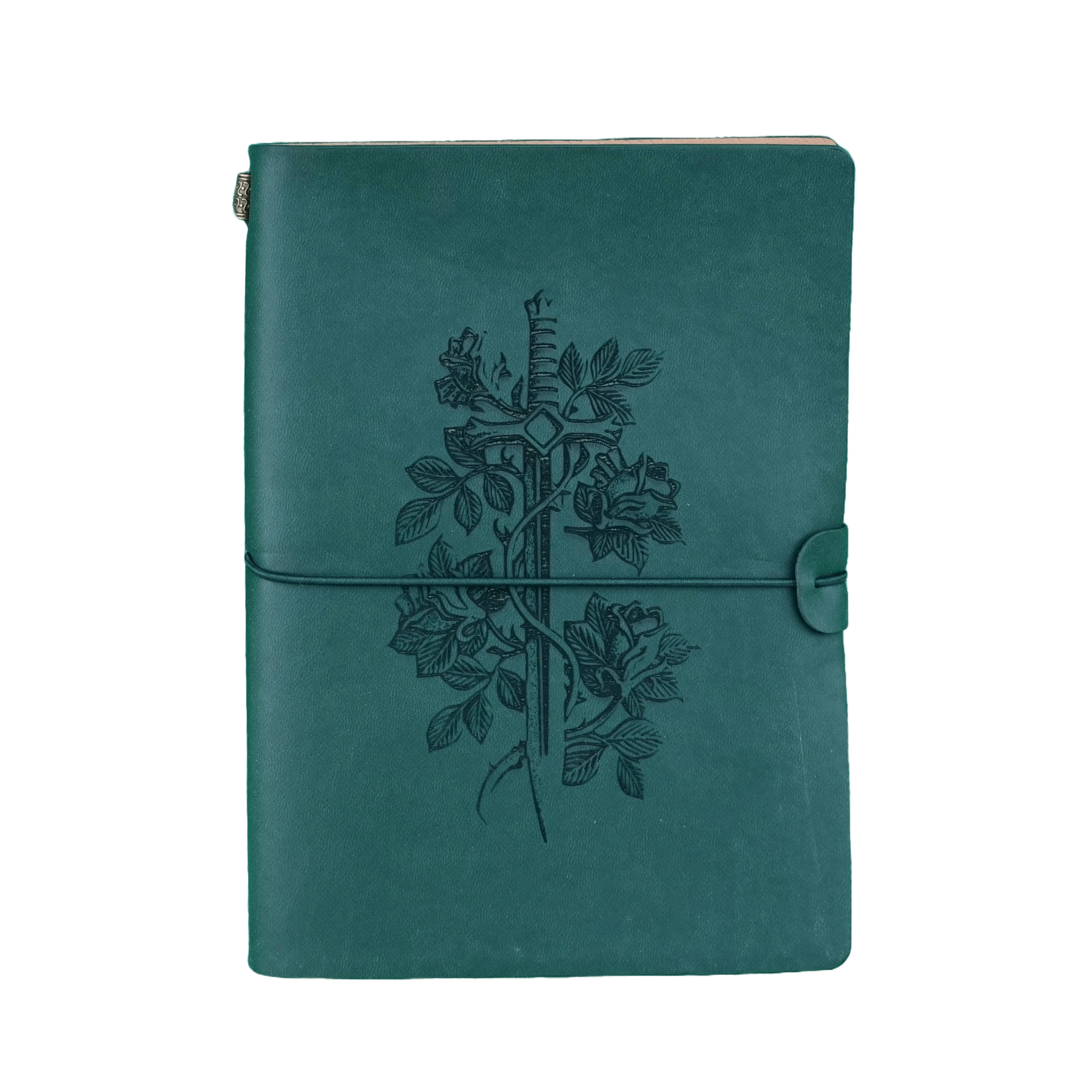 This premium Character Journal is designed to elevate the tabletop RPG experience for players of all levels. The deep green cover features a striking laser-engraved sword-and-rose design that commands attention on any retail shelf. Elegant and durable, the journal is built to withstand long campaigns while offering a refined look that appeals to both dedicated players and gift buyers.