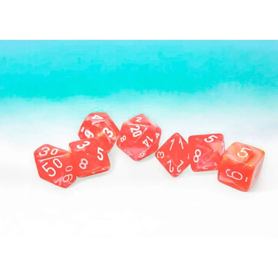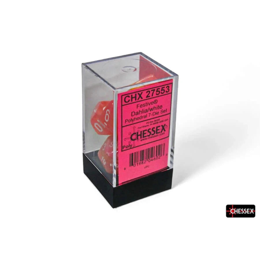 Chessex Dice: Festive Dahlia/White Luminary Polyhedral 7-Dice Set – 27553