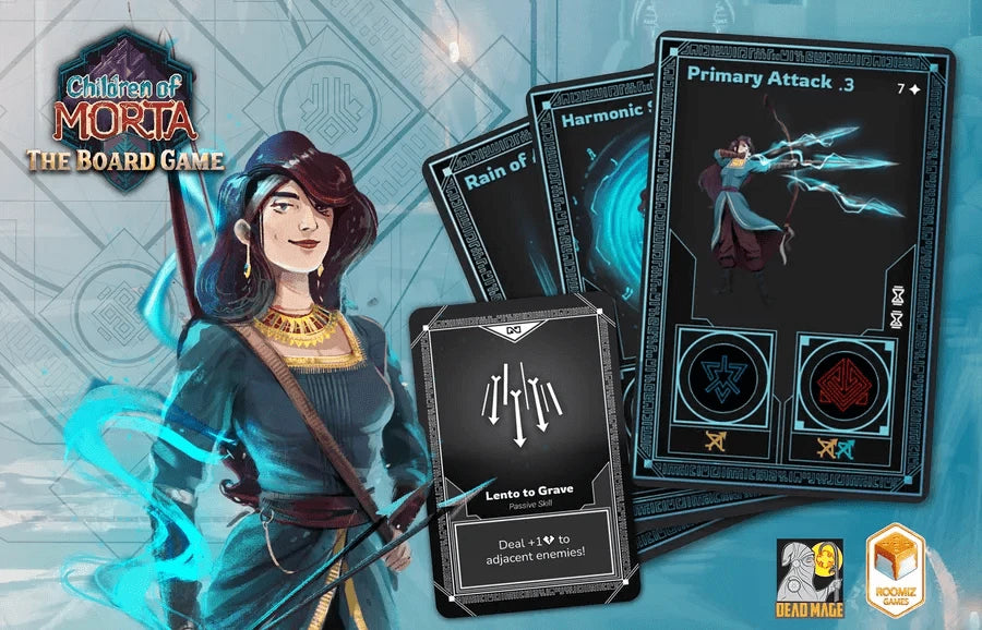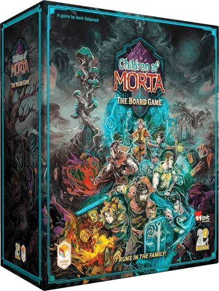 Children of Morta: The Board Game is a cooperative adventure game with a unique shared bag-building mechanism, permanent character development, an emphasis on family growth, simultaneous turns, and interconnected cooperation. In this game, you take on the role of a member of the Bergson family as they try to stop the spreading corruption of evil in their beloved land of Rea. Defeat monsters and bosses to unlock upgrades for your hero, making them stronger and more prepared for what comes next.