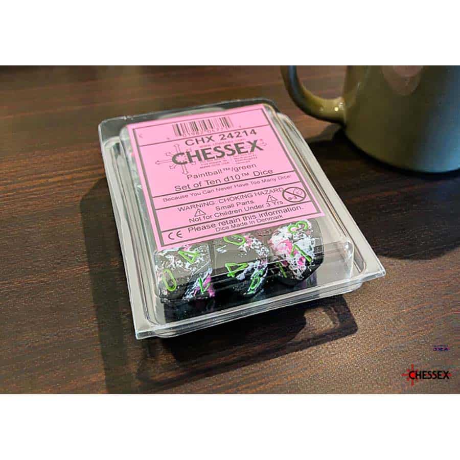 CHX24214 - Chessex D10 Paintball With Green Brushed Dice Set of 10 (Pre-Order)