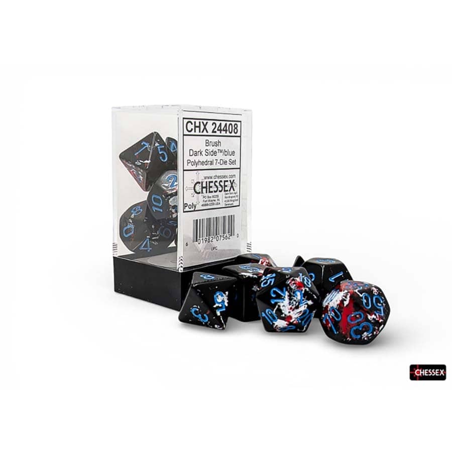 CHX24408 - Chessex Polyhedral Dark Side With Blue Brushed Dice Set of 7 (Pre-Order)