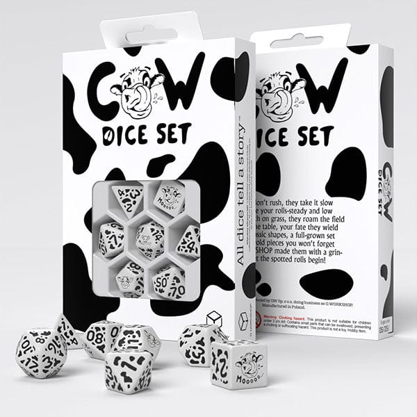 There’s a new beast on the pasture, and it’s ready to face the biggest threats out there! MOOzilla Dice Set by Q WORKSHOP brings a wild twist to classic RPG accessories with a humorous, cow-spotted design. Featuring adorable bovine faces and the highest level of moo-d, these dice are perfect for those who love to roll with style, charm, and just a hint of chaos.
