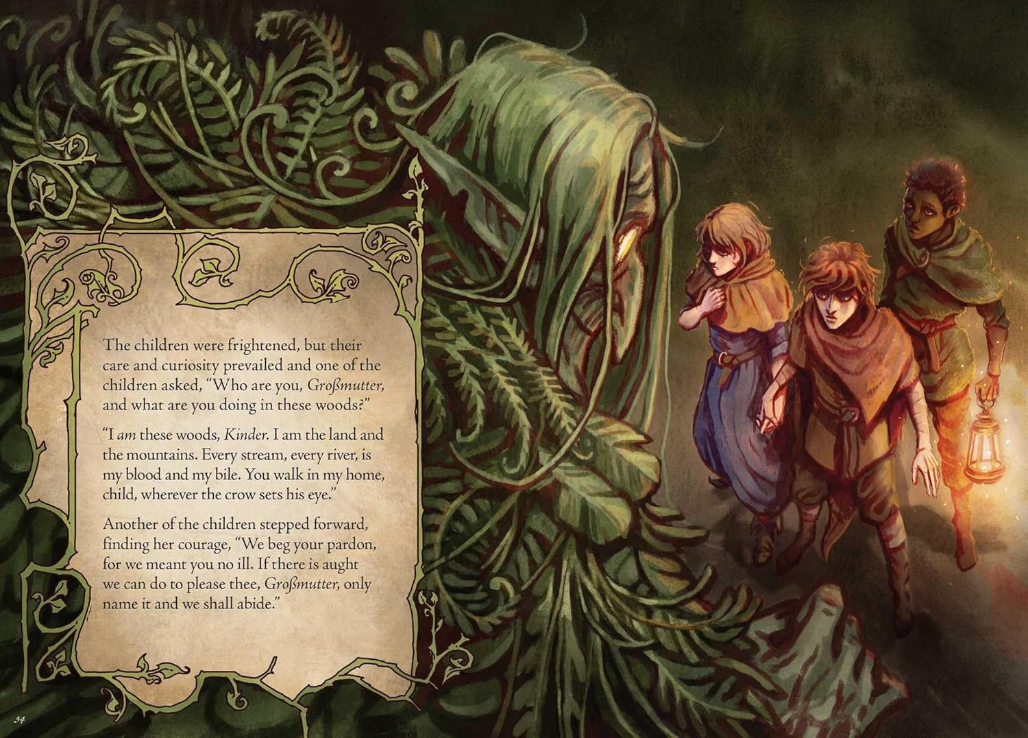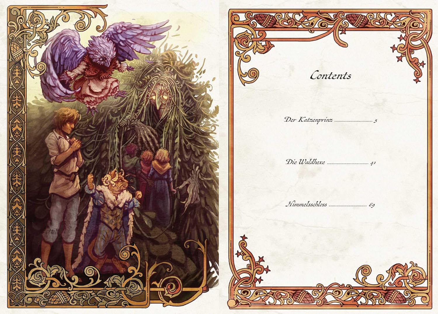 From the frigid regions of the Zemni Fields, born in the very heart of the Dwendalian Empire, come three fairy tales told to children on cold winter nights. Plucked straight from Exandria, this illustrated storybook is fit to grace any archmage’s library. Ornamented with a double-sided and beautifully illustrated jacket, gold trim, and a ribbon bookmark, this elegant fairy tale book includes Der Katzenprinz, Die Waldhexe, and the never-before-told Himmelsschloss, a magical story about a lost Sparrow and a soaring city. Each tale is penned by storyteller Liam O’Brien and illustrated with enchanting original art by Charlie (Newt) Borovský.