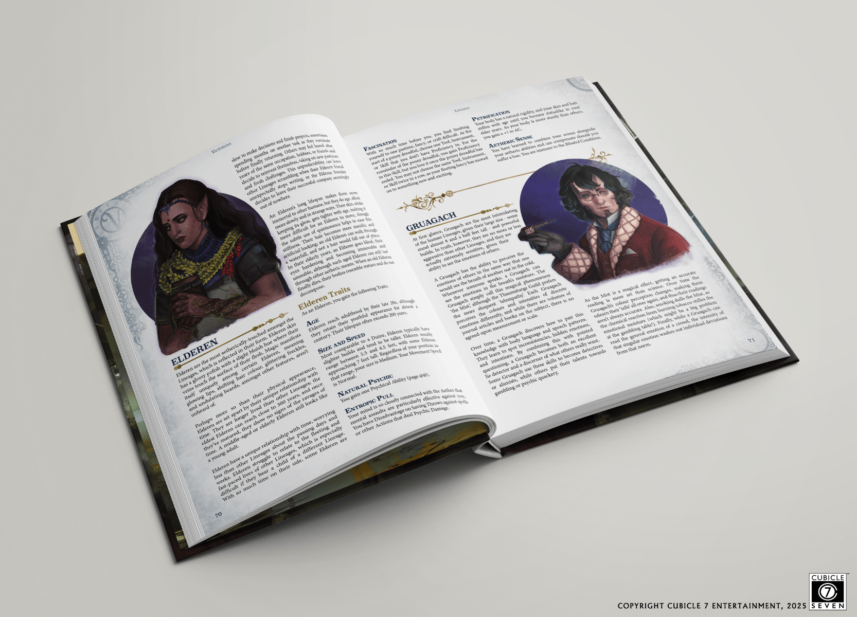 New Character Options: 6 new lineages and 8 classes fit for a Victorian world of sorcery and steam, as well as new weapons and equipment, mechanical enhancements, and magical relics. Complications also add roleplaying opportunities for playing to one’s weaknesses.