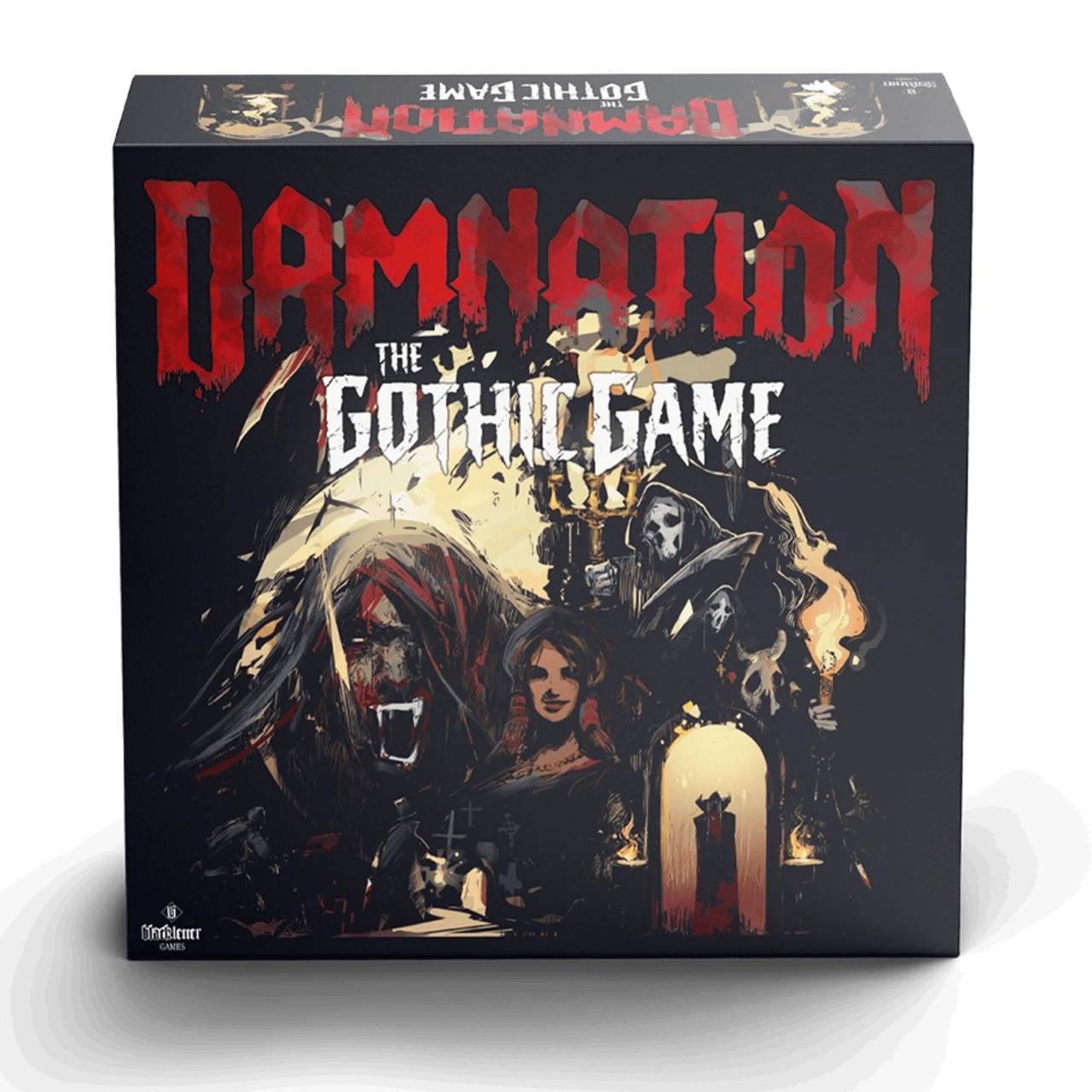 Damnation: The Gothic Game is a 2 - 8 player horror board game with one simple goal - to be the last surviving player. Take on the role of iconic Victorian era villains as you explore a cursed castle, seeking deadly weapons and forbidden powers with which to slay your opponents and claim victory by becoming the final survivor. Ransack rooms to draw cards that along with your Villain’s unique Talents allow you to avoid misfortune and punish those who would stand against you. Position yourself next to an opponent to claim the dreaded ‘Power of Adjacency,’ then laugh as you steer them into the castle’s many fiendish traps and hazards. Slay other Villains to claim their souls, spent at The Dark Tower for monstrously powerful rewards. In death become a ghost, gambling on the fate of the castle and its occupants for a chance to return to life and claim revenge! Or adopt a very different form as your visit The Vault to become The Vampire!