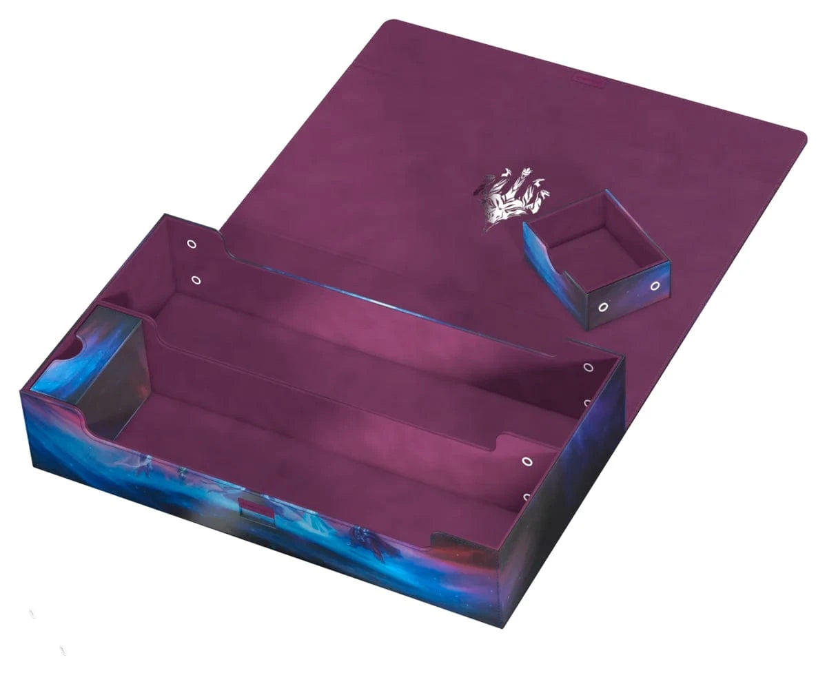 The Omnihive 1000+ Xenoskin is designed to hold multiple deck boxes, dice and/or playmats at once with the help of two flexibly positioned magnetic trays. The deck case, made of the popular and resistant Xenoskin material and printed with officially licensed art from Magic: The Gathering’s upcoming set “Aetherdrift”, is also the perfect choice for storing a larger collection of individual cards (up to 1000 double-sleeved). The Omnihive 1000+ Xenoskin’s inside is made of an elegant microfiber inner lining, while a strong magnetic closure with additional ZnapClaw mechanism ensures that cards and deck boxes are safe inside the box.