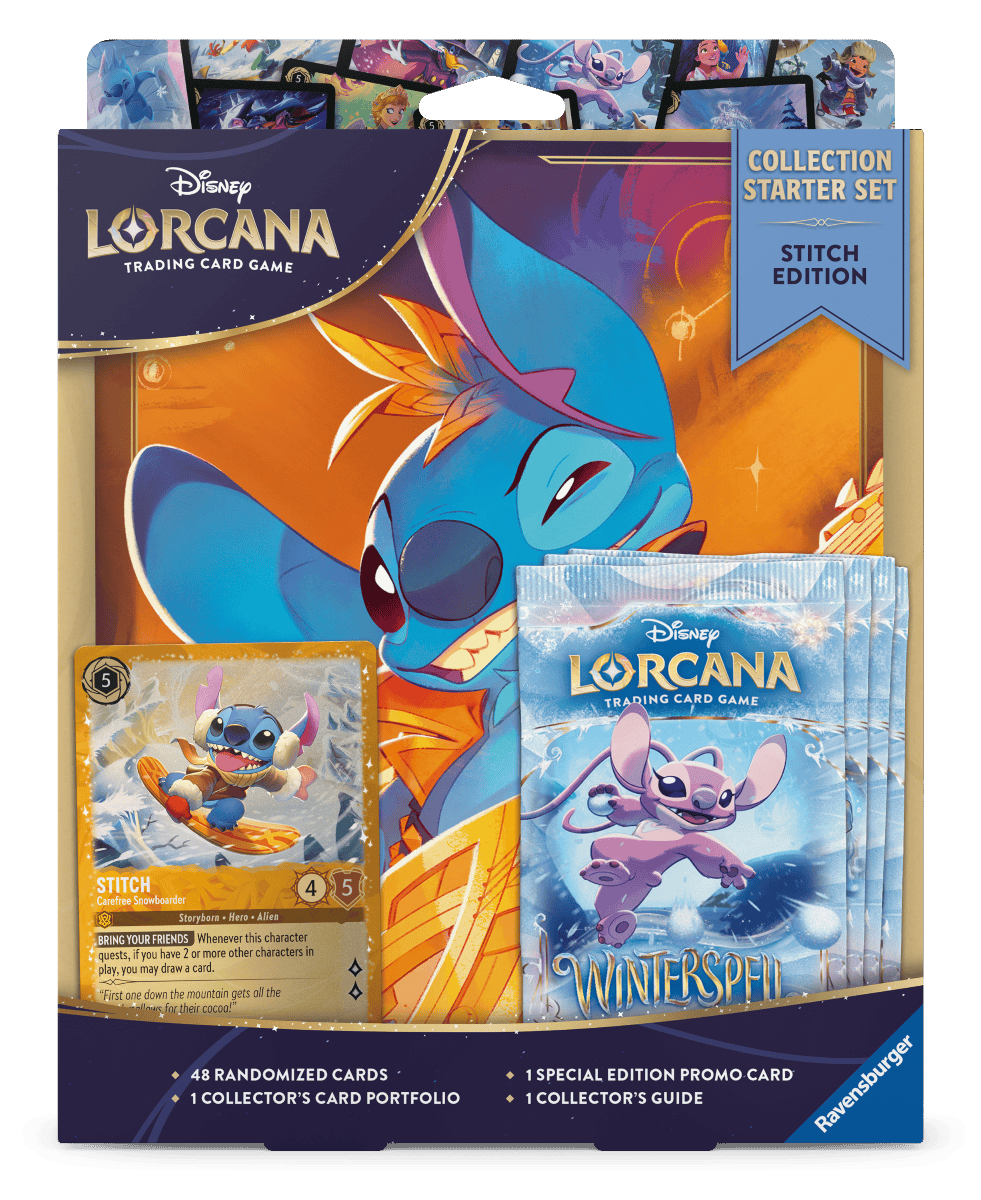 EXCLUSIVE PROMO: Features a shimmering “glimmer foil” Stitch – Carefree Snowboarder promo card, a must-have for collectors and new players alike.
