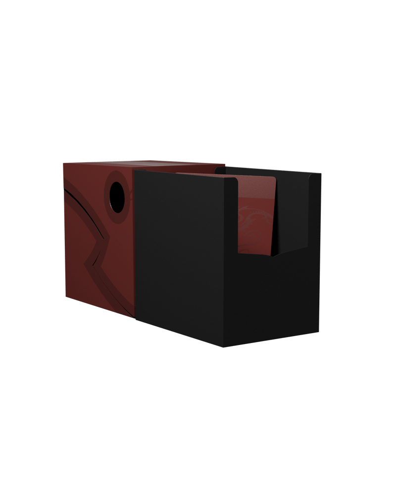 The perfect MTG commander deck box! The Dragon Shield Double Shell is a sturdy deck box with two layers of protection all the way around. The lid wraps around the box for a secure closure or can be set to stay open for easy access to cards. Cube Shells will fit inside. The Double Shell fits inside large Nest boxes and Magic Carpets. Each Double Shell has a writing field on top for personalization and comes with a divider.