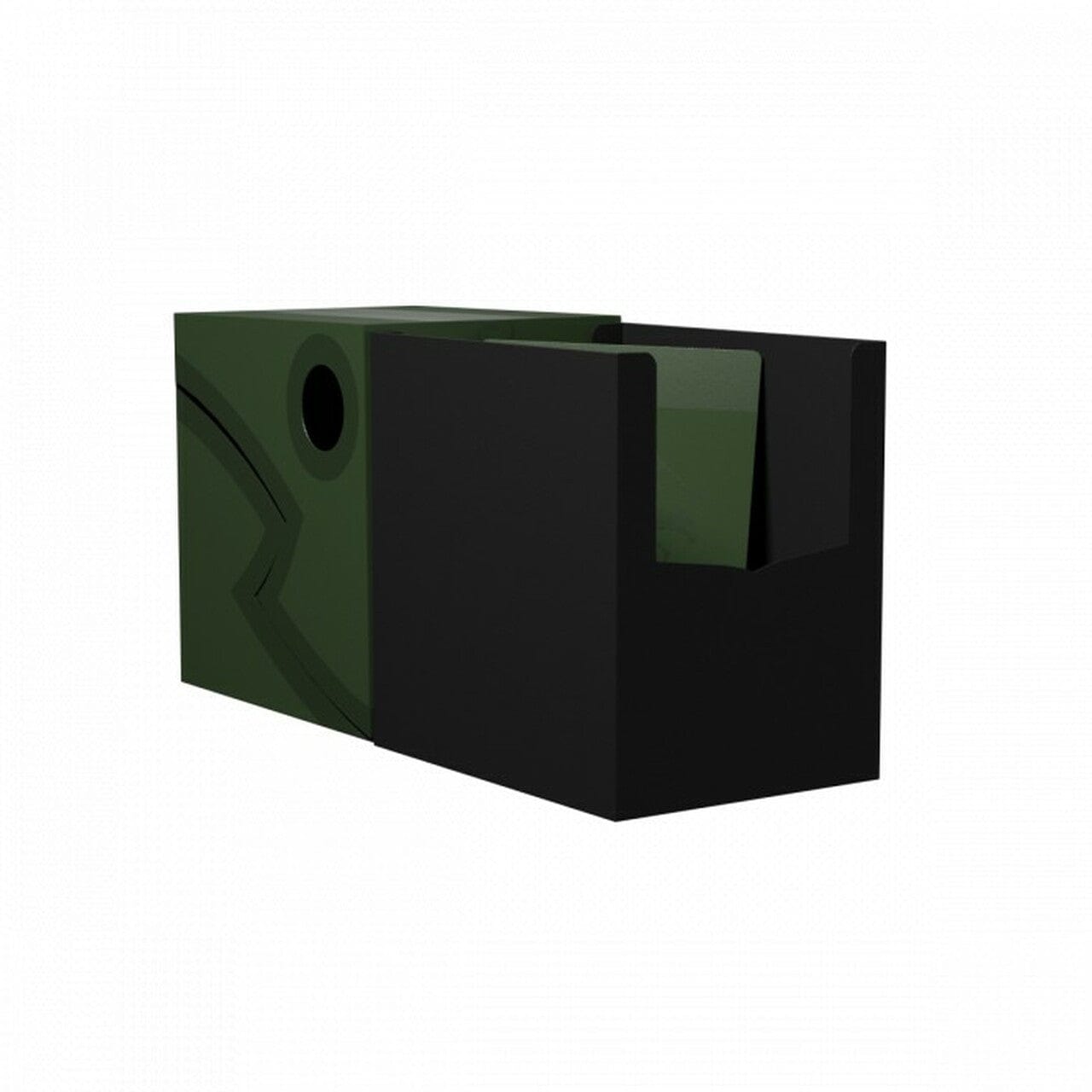 The perfect MTG commander deck box! The Dragon Shield Double Shell is a sturdy deck box with two layers of protection all the way around. The lid wraps around the box for a secure closure or can be set to stay open for easy access to cards. Cube Shells will fit inside. The Double Shell fits inside large Nest boxes and Magic Carpets. Each Double Shell has a writing field on top for personalization and comes with a divider.