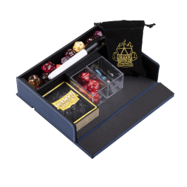 Cast your dice and transport with ease with the Dragon Shield Dice Companion: a two-in-one, compact transportation case and dice tray.The Dice Companions secure magnetic seal will keep your RPG questing items safe during transport. Use the magnetic divider to separate your dice, miniatures, pens, pencils, erasers, and spell- or item cards in any way you see fit. Even common acrylic dice boxes will fit in the Companion. And if you need to keep your rolling area enclosed, simply put the magnetic divider on the edge of the tray to create a fourth wall.The Dice Companion allows for long side rolls, but can also be folded to become a compact dice tray. Enjoy the sound of your dice rolling within the Companion walls as they dance and decide your fate.The Dice Companion oozes thematic style with a mystical midnight blue exterior and gorgeous golden embossing.Whether you're a Game Master or a player, this versatile and durable accessory is the perfect addition to your RPG adventuring kit.Internal dimensions: 14.5 x 19 x 3.8 cm (5? x 7� x 1�")External dimensions: 15.8 x 20 x 4.8 cm (6� x 7-7/8 x 1-7/8")