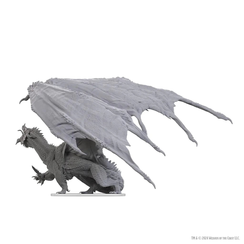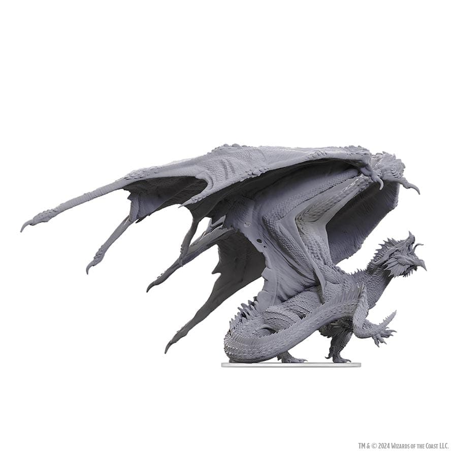 Sculpted in its newest form, the Huge-sized D&D Nolzur's Marvelous Miniatures: Adult Red Dragon Tyrant unpainted, pre-primed miniature sits on a 75mm base, making it perfect for your next encounter. With an 8-inch wingspan, this quintessential dragon will dominate your table and collection.