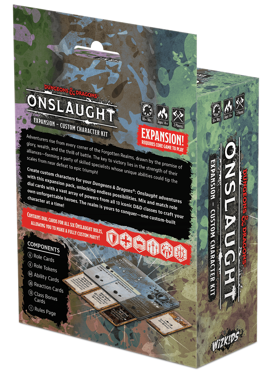 Unlock endless possibilities using a vast array of powers from all 13 iconic Dungeons & Dragons classes! This Dungeons & Dragons Onslaught: Custom Character Kit allows players to forge a fully customized party of legendary heroes. Conquer the Forgotten Realm, one custom-built character at a time!