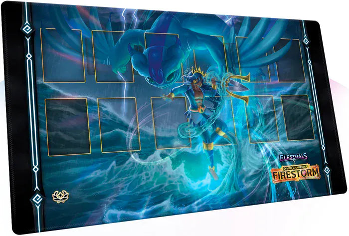 Rule the depths and command the battlefield with the Majesea Champion of Poseidon Playmat. Let the full force of the serene yet devastating power of Poseidon’s Divine Champion, Majesea, protect you as you play. This full-color neoprene playmat embodies the strength of the ocean. Steady, adaptive, and overwhelming!Built for Water Casters, this mat ensures gameplay is smooth and organized. The stitched edges and 1.5mm thickness provide a sturdy, protective surface, and are the perfect companion for those who let their strategy flow like the tides!Features: Durable neoprene material Stitched edges for durability Dimensions: 24" x 14" 1.5mm thick for a smooth, protective surface